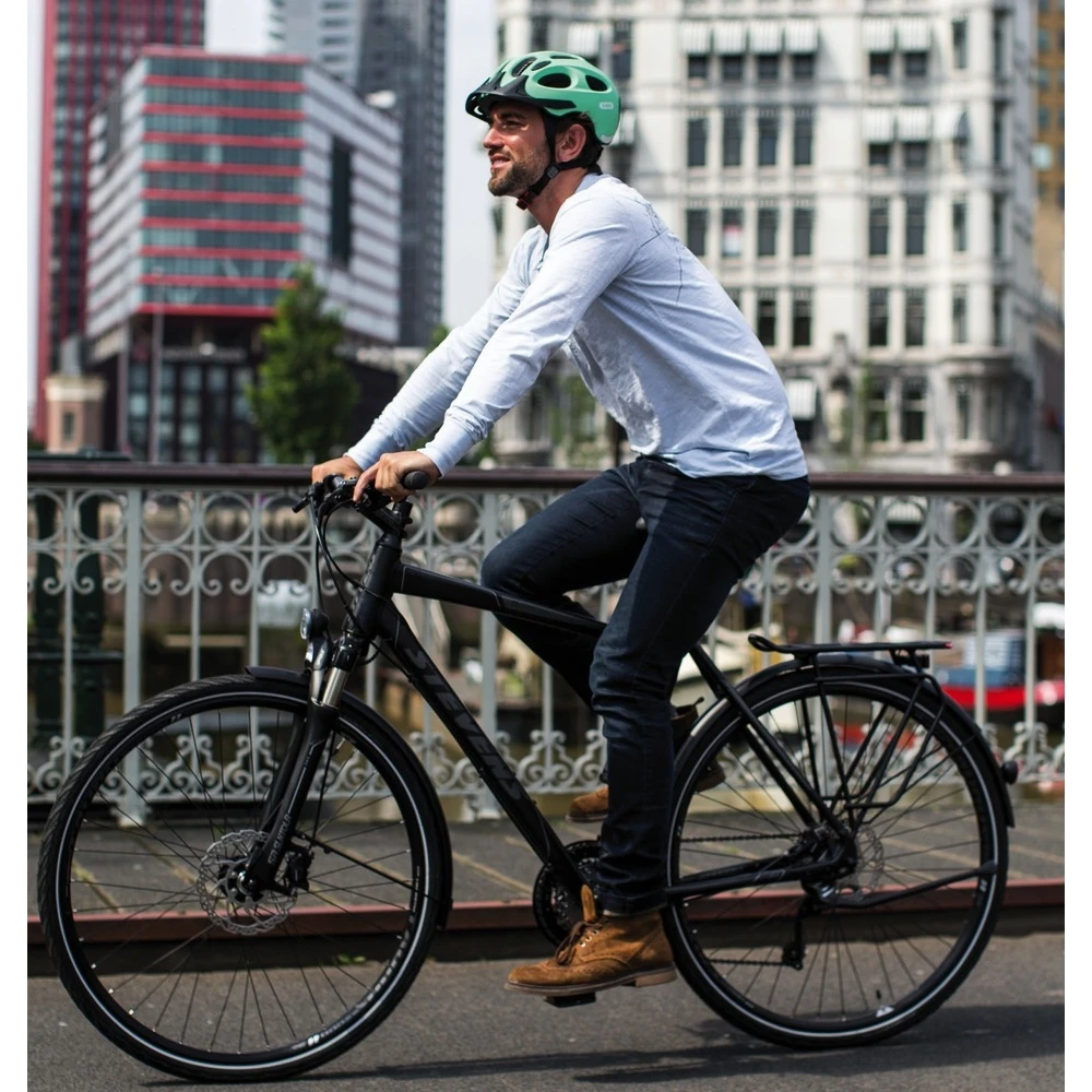 In de eerste plaats moet een fietshelm het hoofd veilig en betrouwbaar beschermen bij een val. Maar ook het uiterlijk speelt een belangrijke rol bij de keuze van een helm. De stadshelm overtuigt met een eenvoudig, stedelijk en modebewust uiterlijk en past perfect bij het moderne design van stijlvolle stadsfietsen.