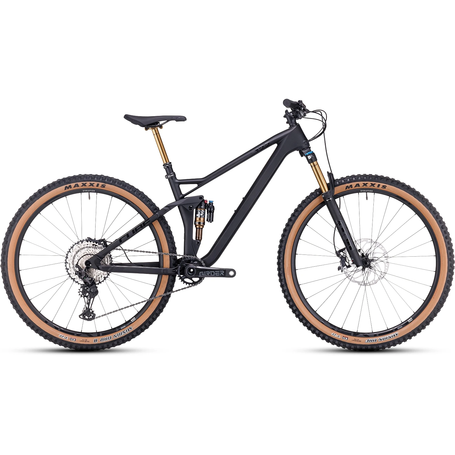 En een 1×12 XT-transmissie van Shimano met dito remmen. Daarmee zit je altijd goed. Een fraaie upgrade vormen de carbon cranks van Praxis. Een dropper-post is natuurlijk inbegrepen, een paar Minion EXO’s van Maxxis zorgen voor karrenvrachten tractie en controle.