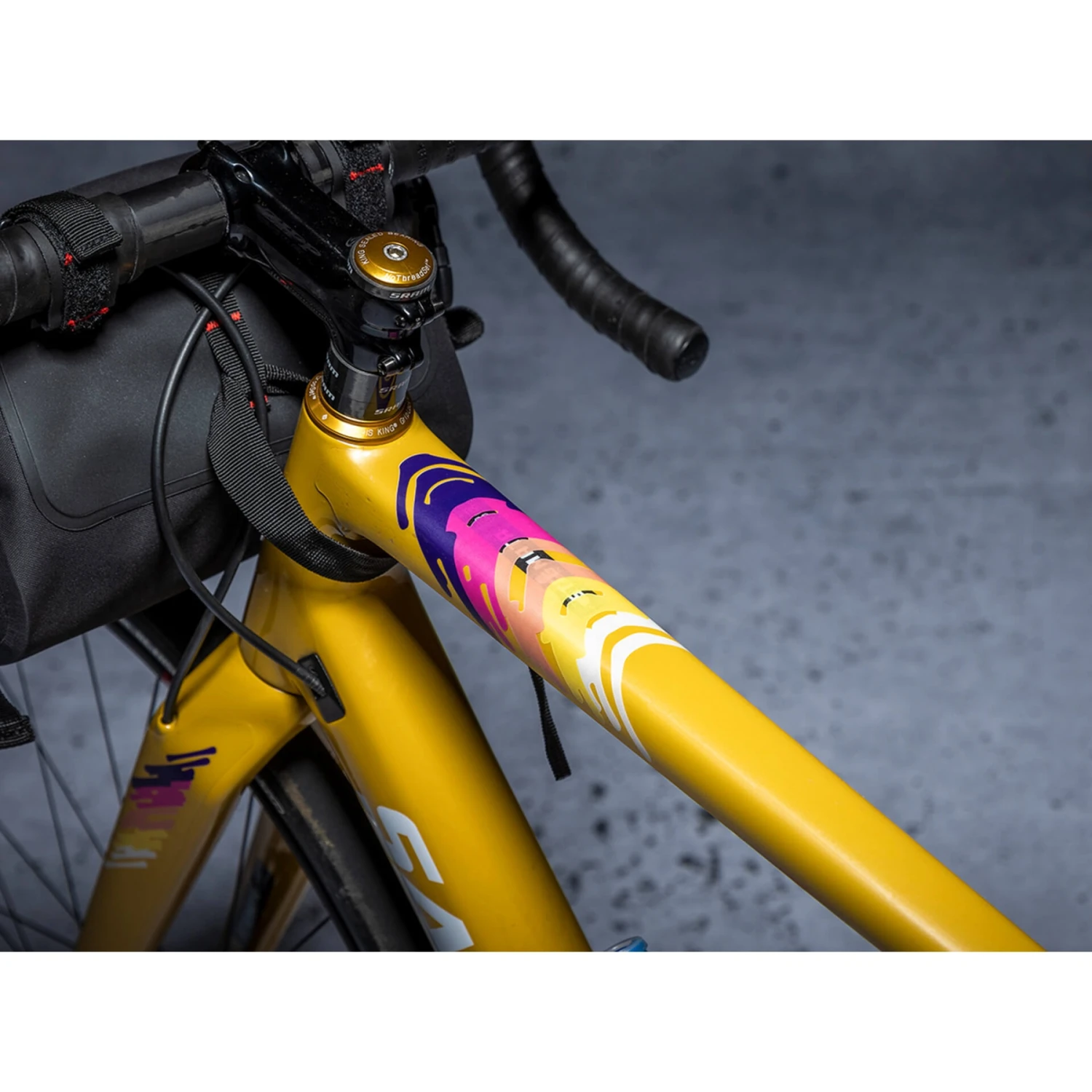 - Een speciaal gesneden patroon van plakfolies voor gravel bikes betekent minder afval en eenvoudiger montage – en de voordelen voor uw gravel bike zijn bescherming tegen klittenband/bagagebanden, kabelwrijving en schade door stenen en rotsen.
