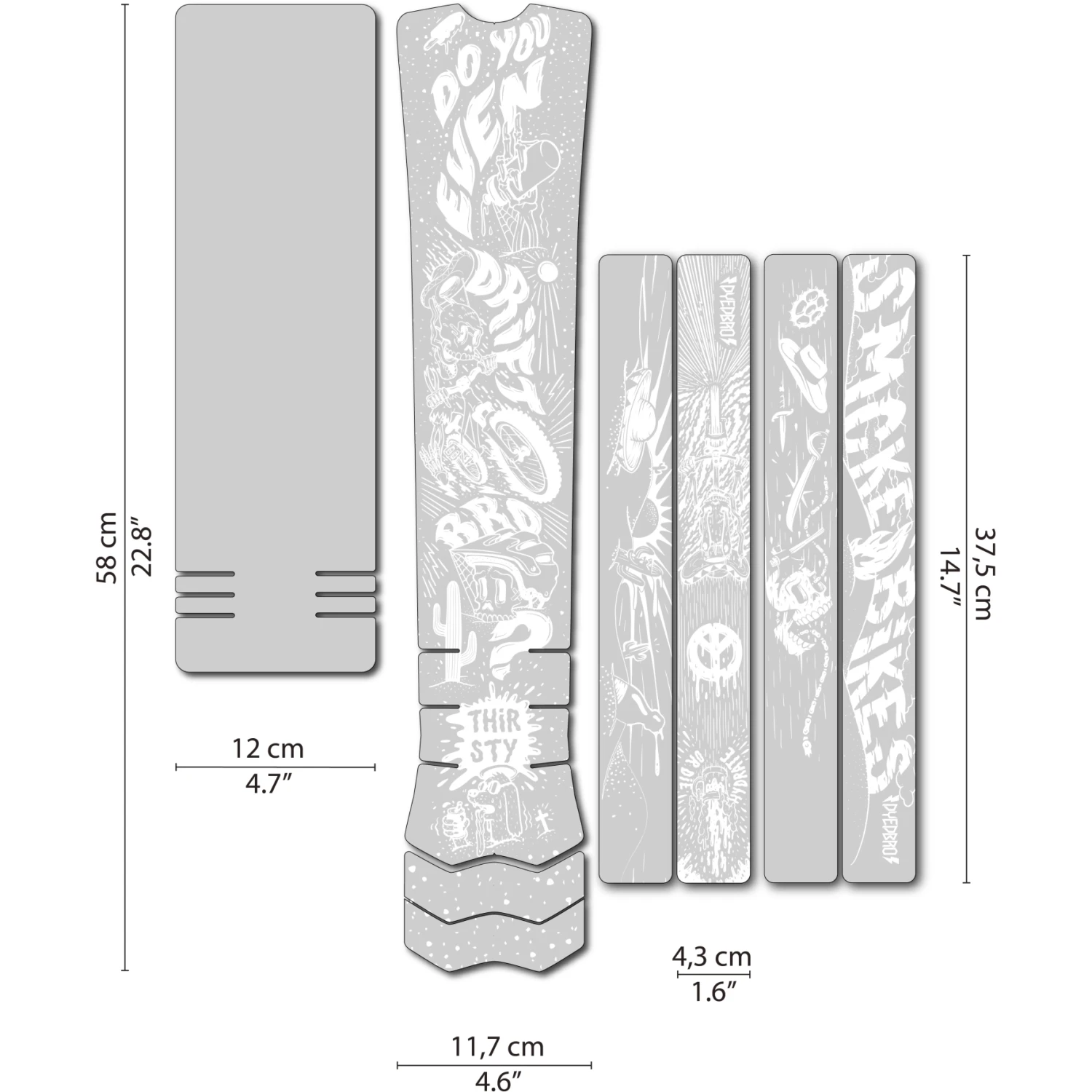 Ontworpen om de bovenbuis van het frame, de onderbuis en de zadel- en kettingsteunen te beschermen. Met in totaal 8 onderdelen. Geschikt voor alle e-bikes. Voorkomt verfschilfers en krassen op alle beschermde plaatsen.