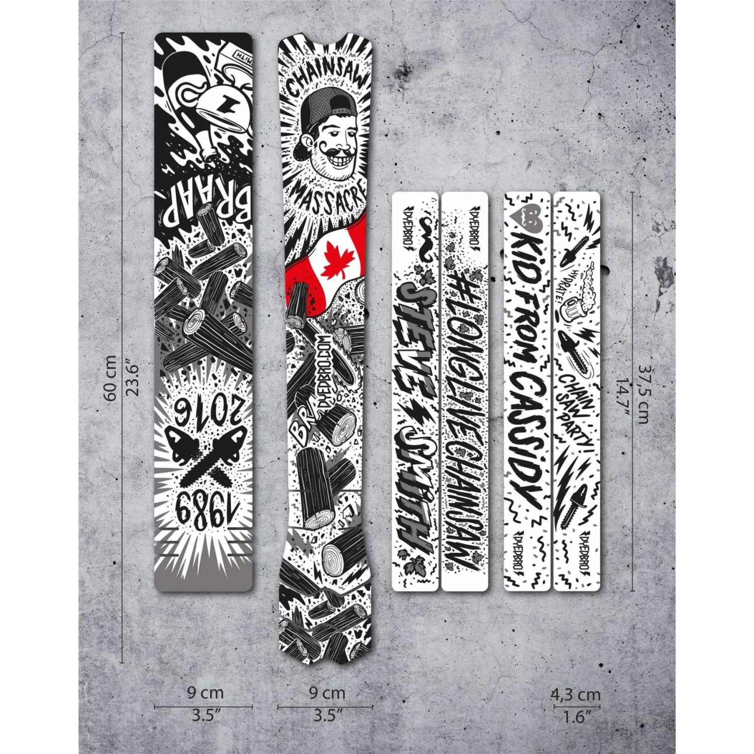 Steve Smith, geboren in Cassidy, British Columbia, was waarschijnlijk de meest productieve en invloedrijke Canadese downhill racer. Ambitieuze atleet en felle concurrent, maar altijd bescheiden en met beide benen op de grond. Hij heeft een opmerkelijke invloed gehad op alle jonge en aspirant Canadese gravity racers en nog veel meer over de hele wereld. Daarom heeft Dyedbro ter ere van zijn carrière deze zeer speciale framebeschermer gemaakt. Het zal ook geld inzamelen voor de Stevie Smith Legacy Foundation. 5% van de verkoopprijs wordt gedoneerd met als doel 1.000 Canadezen te bereiken tegen 11 mei 2020. Na die datum worden de donaties voortgezet.