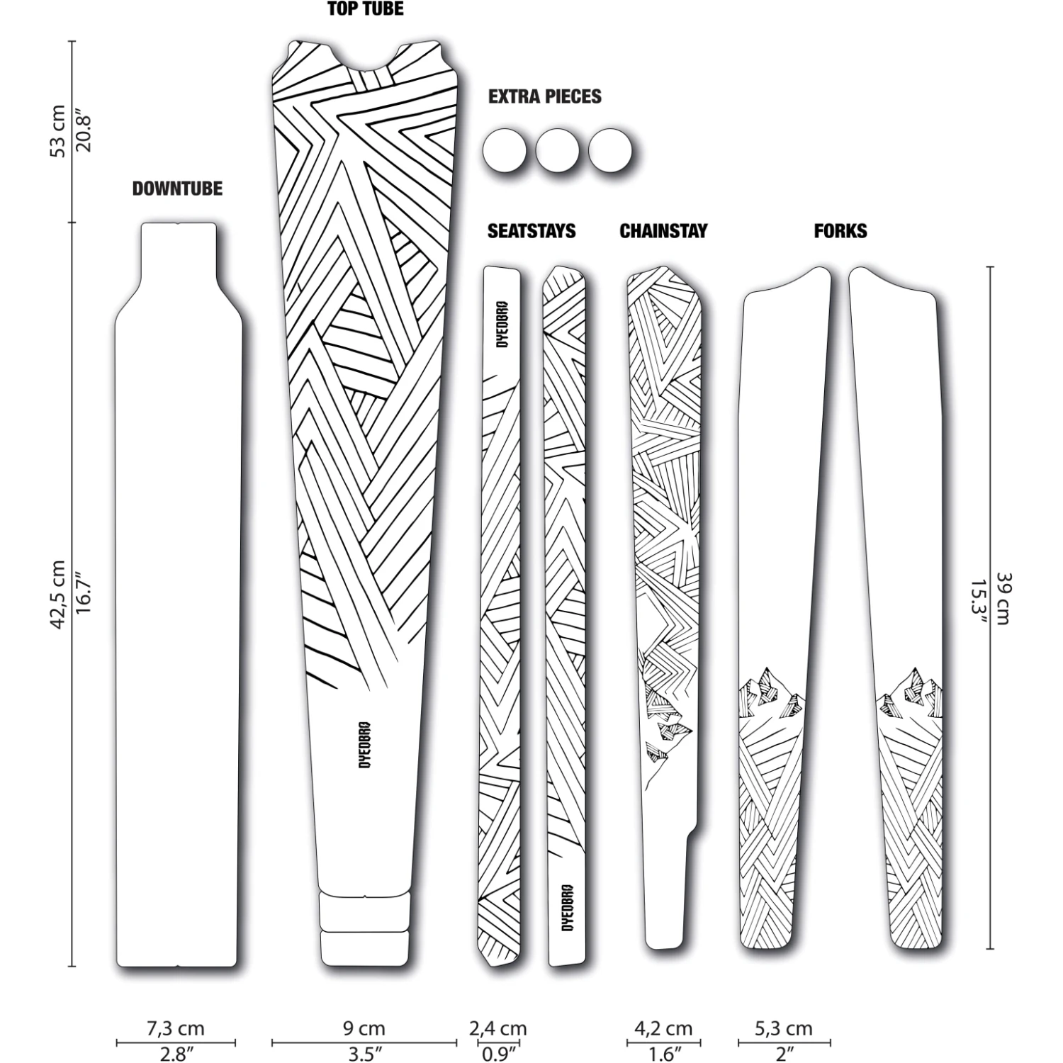 Kenmerken van de DYEDBRO Gravel framebeschermingsset STAY FREE