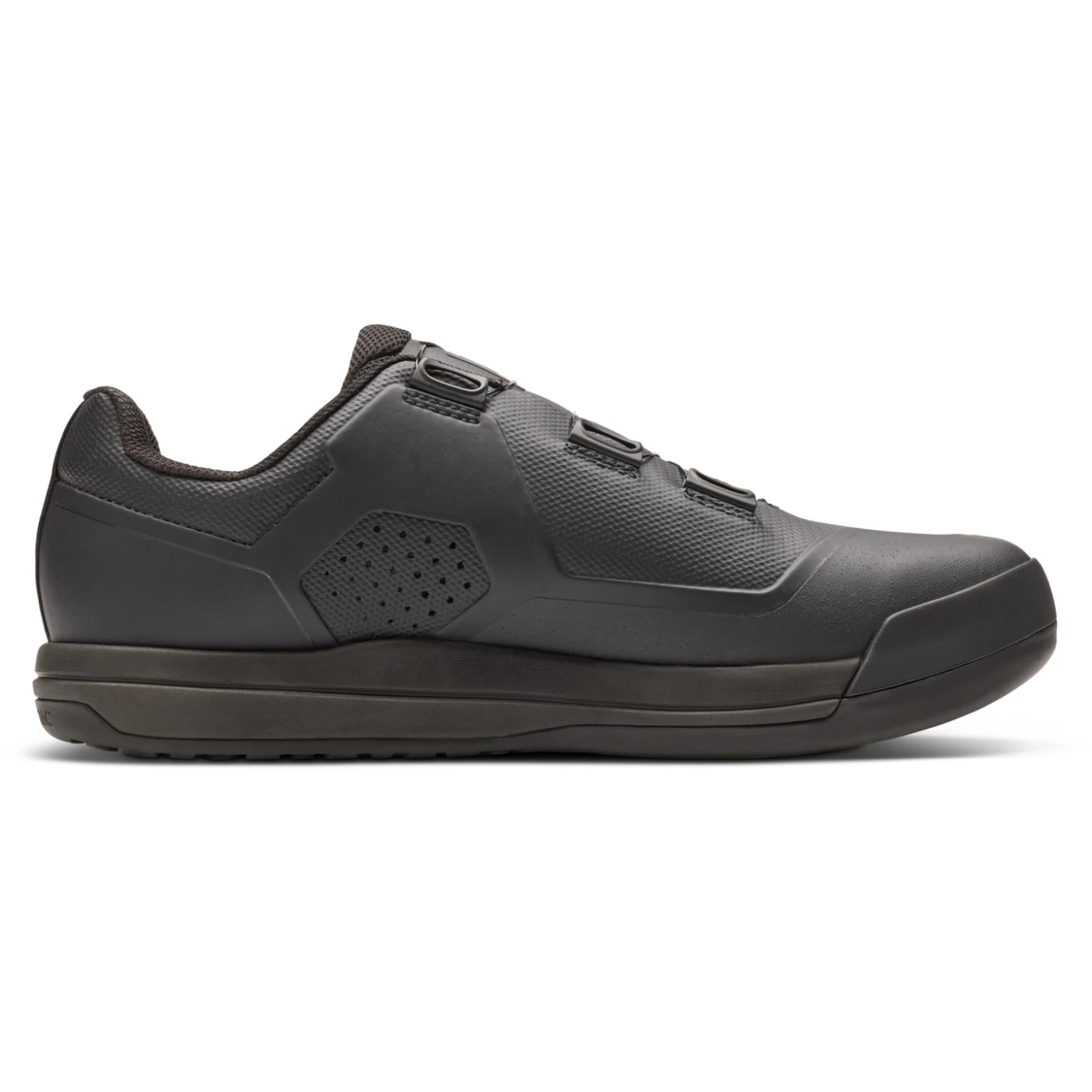 Het dubbele BOA® Li2 systeem dat in deze trail-specifieke schoenen is geïntegreerd, brengt meer kracht op de pedalen en maakt de pasvorm vrijwel perfect. De Union fietsschoen heeft robuuste eigenschappen, zoals de voorgevormde veiligheidsneus die beschermt tegen steenslag, en kan de ontberingen van het parcours met gemak aan. Met een lichtgewicht en precieze pasvorm, het lage profiel en een speciaal ontworpen tussenzool voor meer grip en gevoel, bieden deze schoenen meer comfort tijdens het shredden. De krachtoverbrenging naar het pedaal wordt geoptimaliseerd door de voorgevormde interne verstevigingsplaat, maar stijfheid gaat niet ten koste van het comfort buiten de fiets. Dus als je ooit moet afstappen om een omgevallen boom te ontwijken, zit je aan de veilige kant. De Ultratac™ rubberen composietzool heeft een uitgekiend profiel voor superieure grip en duurzaamheid, terwijl het 2-bout schoenplaatjessysteem compatibel is met alle grote pedaalfabrikanten. Met hun veelzijdige en ingetogen stijl zijn de Union schoenen geboren voor de trail en maken ze moeiteloos de overgang van singletrack naar bier na de rit.