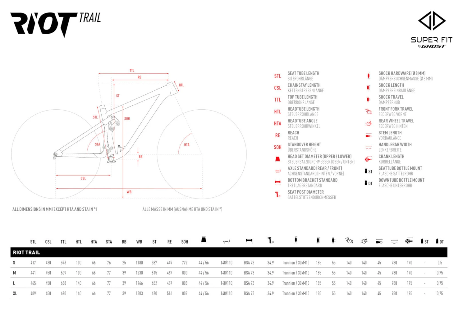 GHOST luidt een nieuw tijdperk in de fietsontwikkeling in en neemt afscheid van traditionele constructiemethoden. Voortaan worden de fietsen ontworpen met behulp van een speciaal ontwikkeld algoritme voor de holistische berekening van zogenaamde “from-rider-to-bike geometrieën”. Dit algoritme heet SuperFit. Volgens het SuperFit-concept wordt maat S geleverd met 27,5″ wielen, terwijl de maten M-XL zijn uitgerust met 29″ wielen.