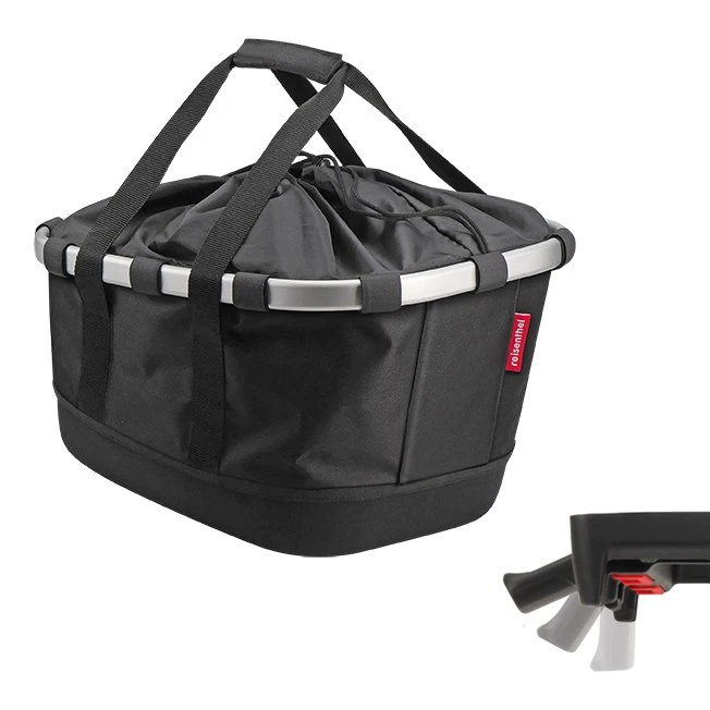 De klassieke mandvorm die naar voren afloopt, creëert ruimte voor het zadel en bewegingsvrijheid voor de fietser. Een trekkoord beschermt de inhoud tegen eruit springen, en een ritsvak binnenin biedt ruimte voor sleutels en waardevolle spullen. De verstijvers kunnen worden verwijderd zodat de mand plat kan worden opgeborgen om ruimte te besparen.