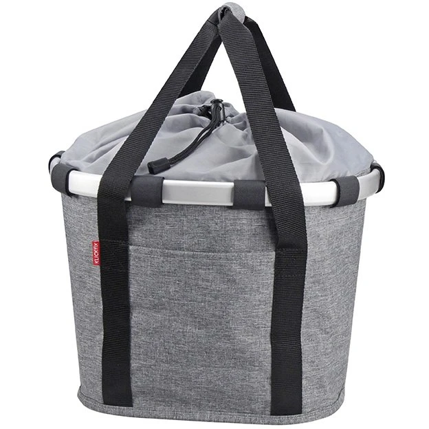 De chique fietsmand van KLICKfix & Reisenthel met het opvallende lichtgewicht aluminium frame – voorzien van koppeling voor de KLICKfix stuuradapter van RIXEN & KAUL. Voor boodschappen of een uitstapje vindt iedereen een passende decoratie bij zijn fiets. De mand kan in een handomdraai worden gesloten met het trekkoord. Gsm-sleutels & co. vinden hun plaats in de praktische extra vakken en als de mand voor langere tijd wordt opgeborgen, kan hij plat worden opgevouwen.