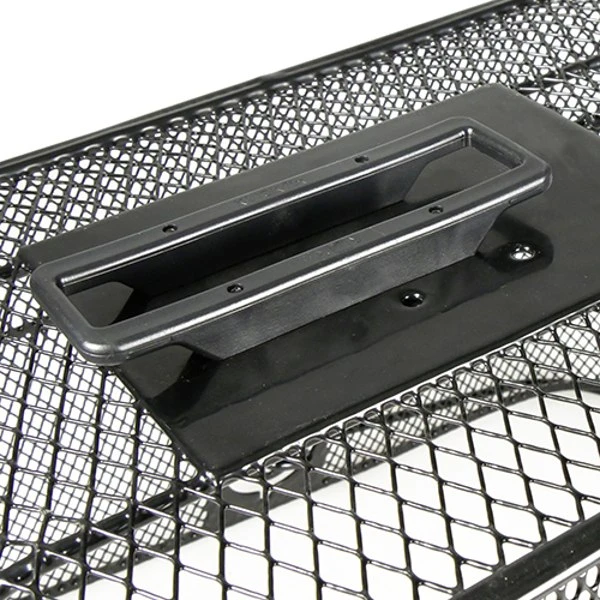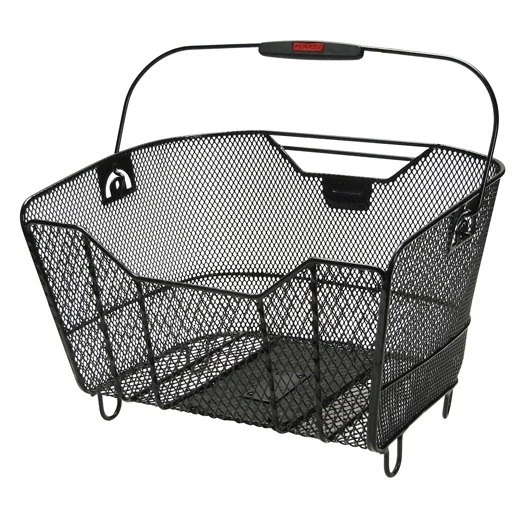 Een dwarsgeplaatste, fijnmazige korf met een bijzonder groot volume. Met plastic koppeling voor GTA kan hij gemakkelijk in de adapter van de bagagedrager worden gestoken en automatisch worden vergrendeld. Het handvat kan tijdens het rijden tussen de twee dwarsbalken van de mand worden geklemd, zodat het niet rammelt.