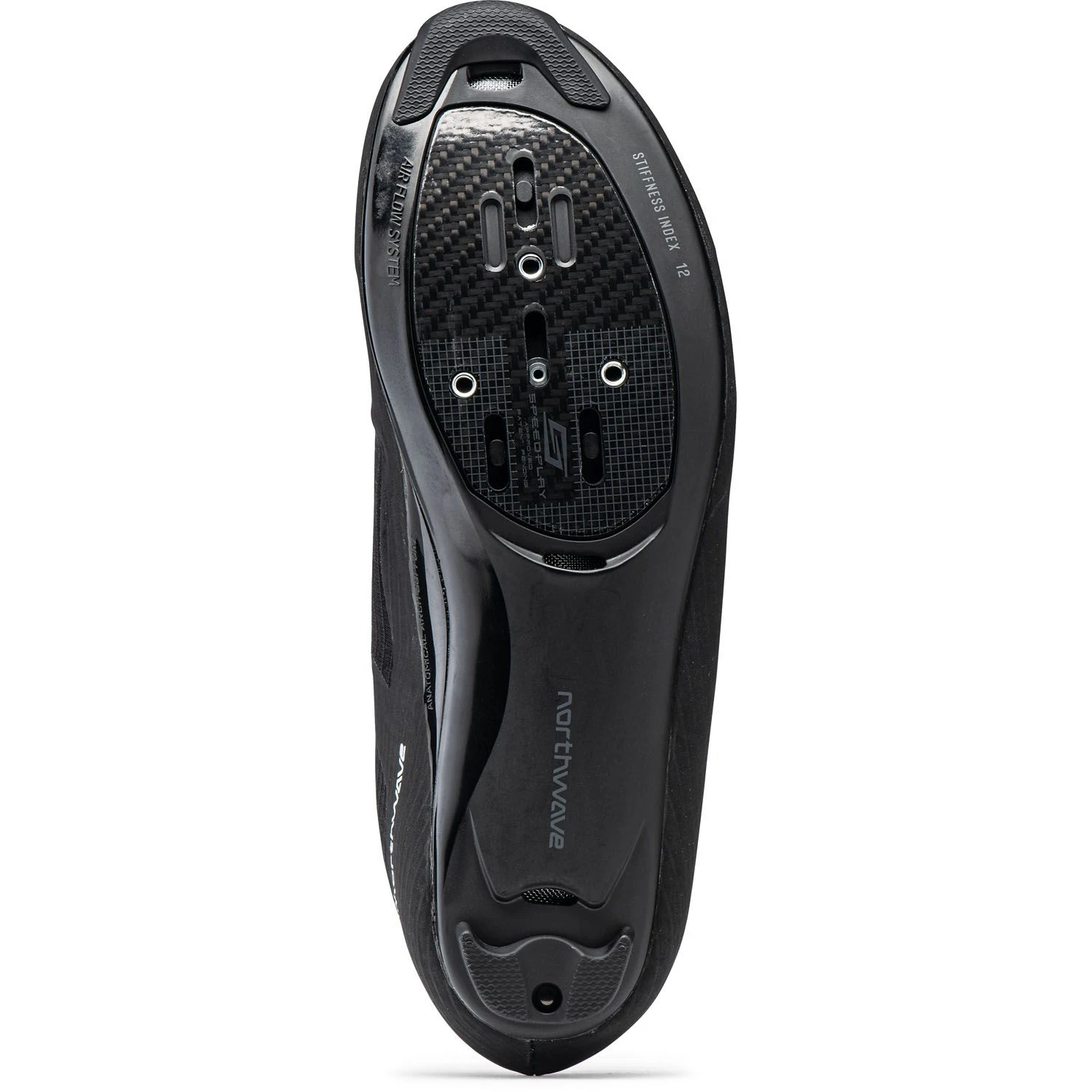 Racefietsschoenen met Morph Carbon 12 AAS zool met volledige carbon inzet in het pedaalgedeelte met een stijfheidsindex van 12,0.