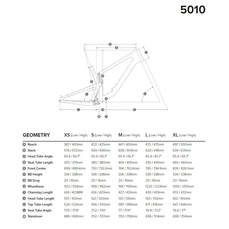 De geometrie is maatafhankelijk, de lengte van de liggende achtervork groeit mee met de framemaat. En door de superlage standoverhoogte voelt hij (bijna) aan als de BMX uit je kindertijd. Misschien klinkt het een beetje te nostalgisch, maar de 5010 is de perfecte introductie tot de grote, leuke wereld van het mountainbiken.