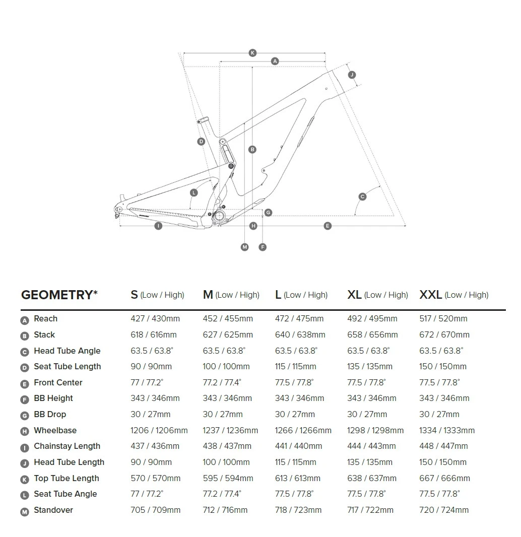 De zithoek houdt de rijder altijd centraal op de steile beklimmingen die leiden naar de nog steilere afdalingen. De zitbuishoek wordt steiler naarmate de framemaat toeneemt, dus de balans past bij elke maat.