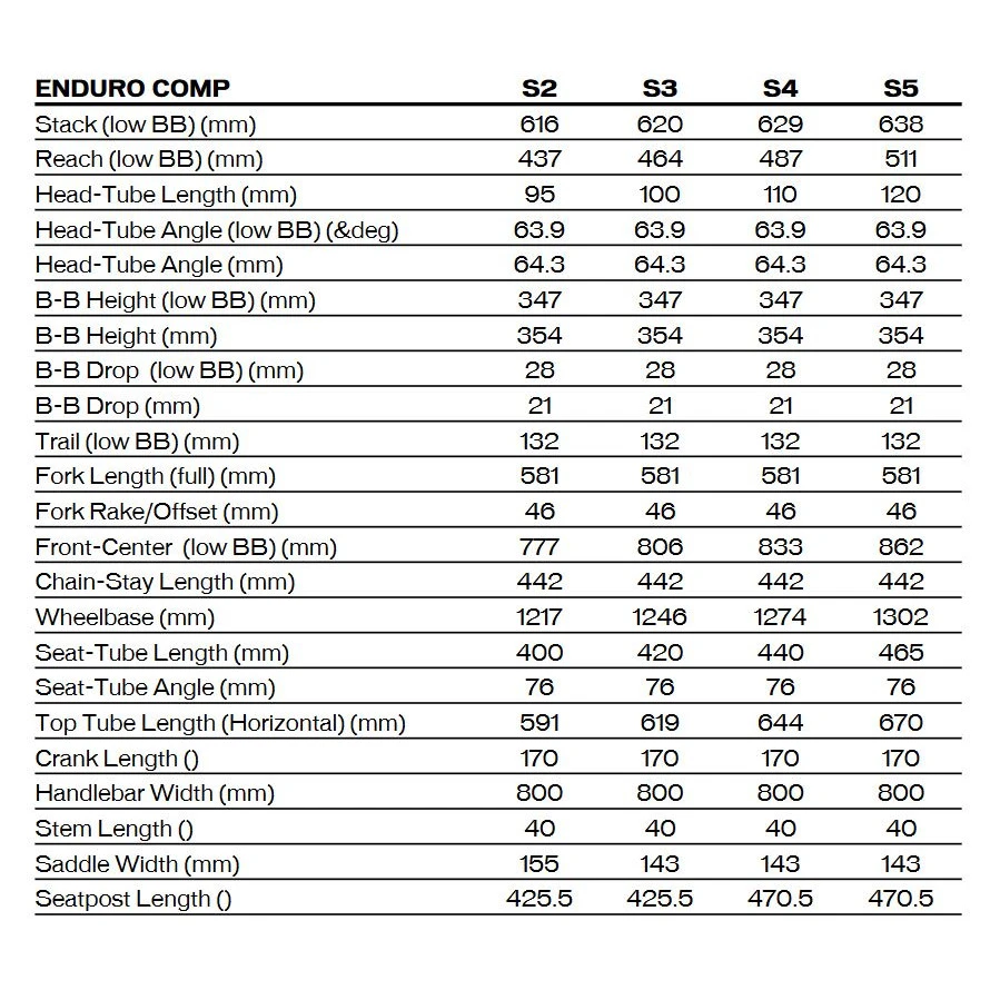 Snelheid en pasvorm sluiten elkaar niet uit, en daarom werkt de progressieve geometrie van de Enduro zowel bergop als bergaf perfect. Het verschil tussen de zitbuislengtes en de stack is niet groot tussen de verschillende framematen hier, dus je kunt nu eigenlijk elke framemaat kiezen die bij je lichaamslengte en rijstijl past. Met de nu vlakkere balhoofdbuishoek, grotere reach en steilere zitbuis in alle maten krijg je een snellere en krachtigere fiets – ongeacht de maat.