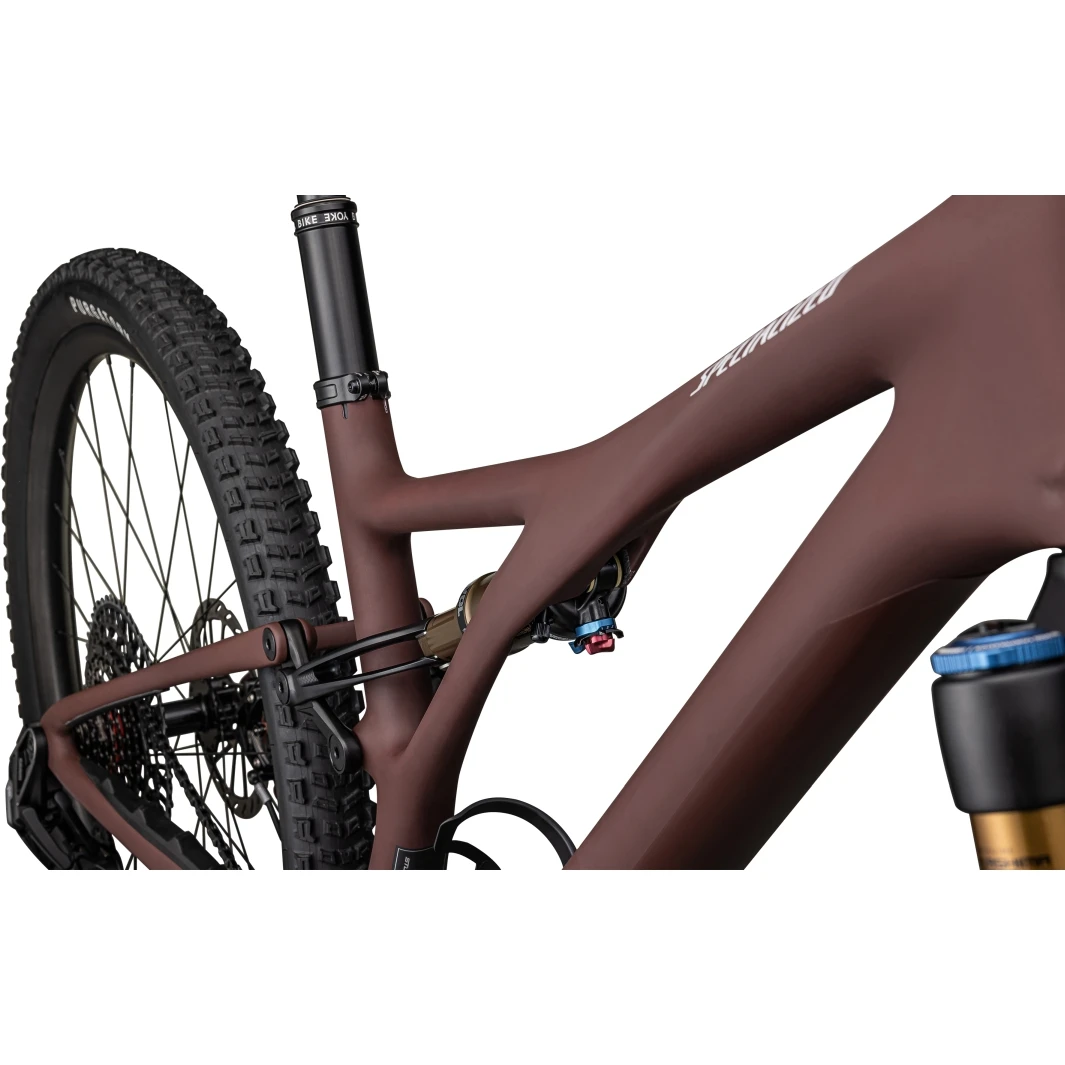 Toen Specialized begon met het ontwerpen van de Stumpjumper, hadden ze een paar doelen voor ogen. Ze wilden dat het de lichtst mogelijke fiets zou zijn, maar zonder aan duurzaamheid in te boeten. Ze wilden een stijf chassis dat door bochten zou trekken alsof het op rails reed en een geometrie waar iedereen van kon genieten. Dit alles gecombineerd met de beste kinematica voor het chassis die ze konden vinden.