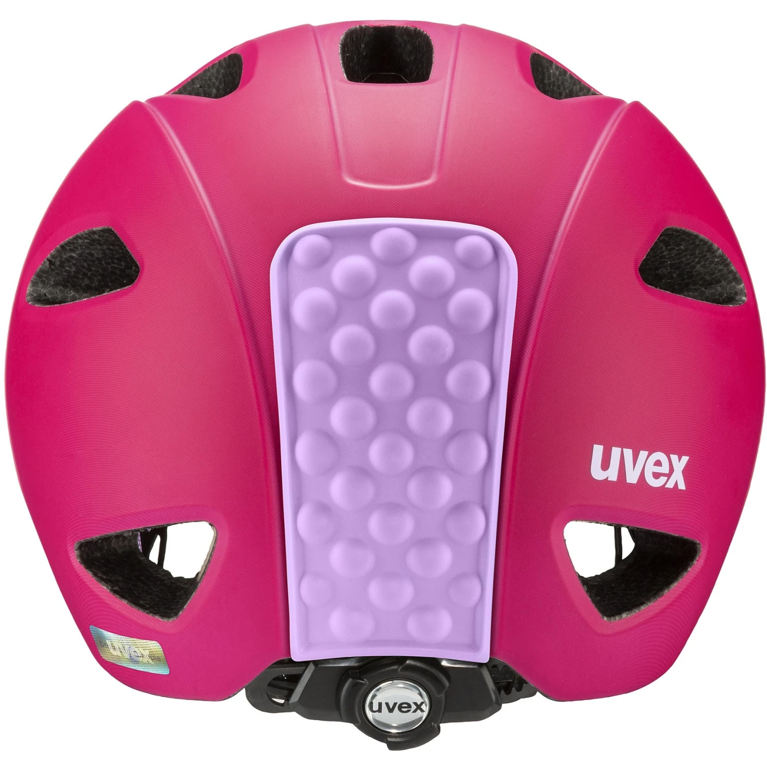De veiligheid van baby’s en peuters is een topprioriteit. Daarom moet zelfs bij het allereerste fietstochtje in het kinderzitje een geschikte fietshelm op het kleine hoofdje. Het moet lekker licht zijn, maar ook super veilig. De uvex oyo overtuigt over de hele lijn met zijn kindvriendelijke ontwerp, zachte berenvulling en eersteklas bescherming. Dankzij het innovatieve uvex xTRA Shield, dat het schild van de helm in het EPS-materiaal integreert, is de gevoelige voorhoofdzone in geval van nood optimaal beschermd. Bijzonder slim: de uvex KID PROtect die aan de achterkant van het hoofd is bevestigd, vermindert de trillingen die op de helm worden overgebracht bij ongelijke wegen door het kinderzitje en voorkomt ook dat het hoofd van de rugleuning van het zitje glijdt.